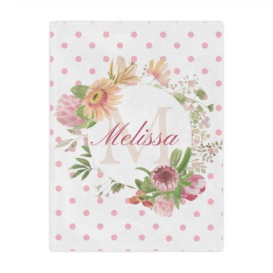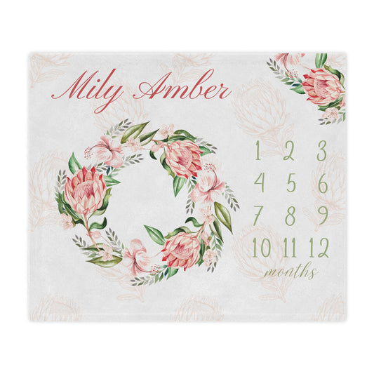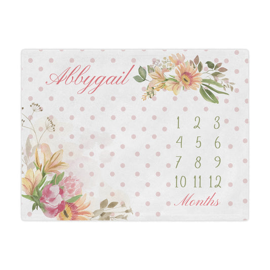 PERSONALIZED BABY MILESTONE Girl Blanket, Pink Flower Month Custom name blanket