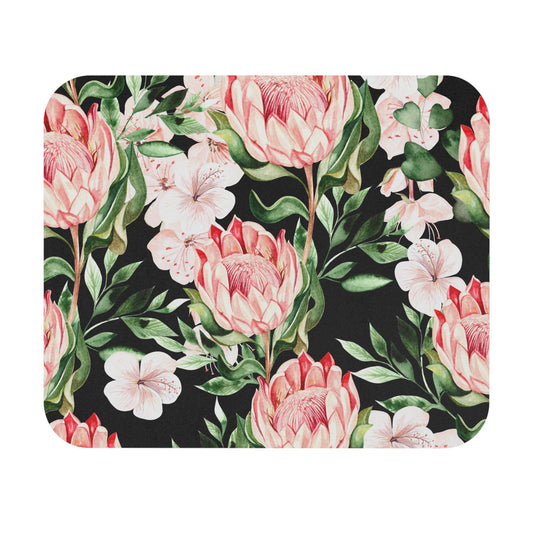 Botanical Art Nouveau Mouse pad, Protea pink and green floral Design mousepad